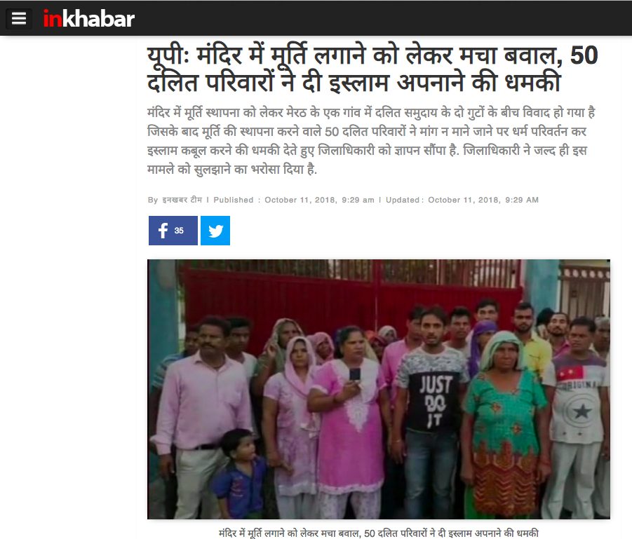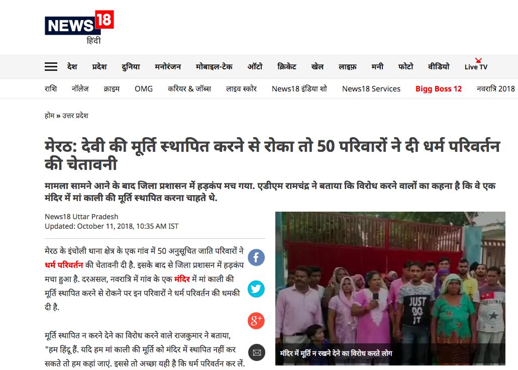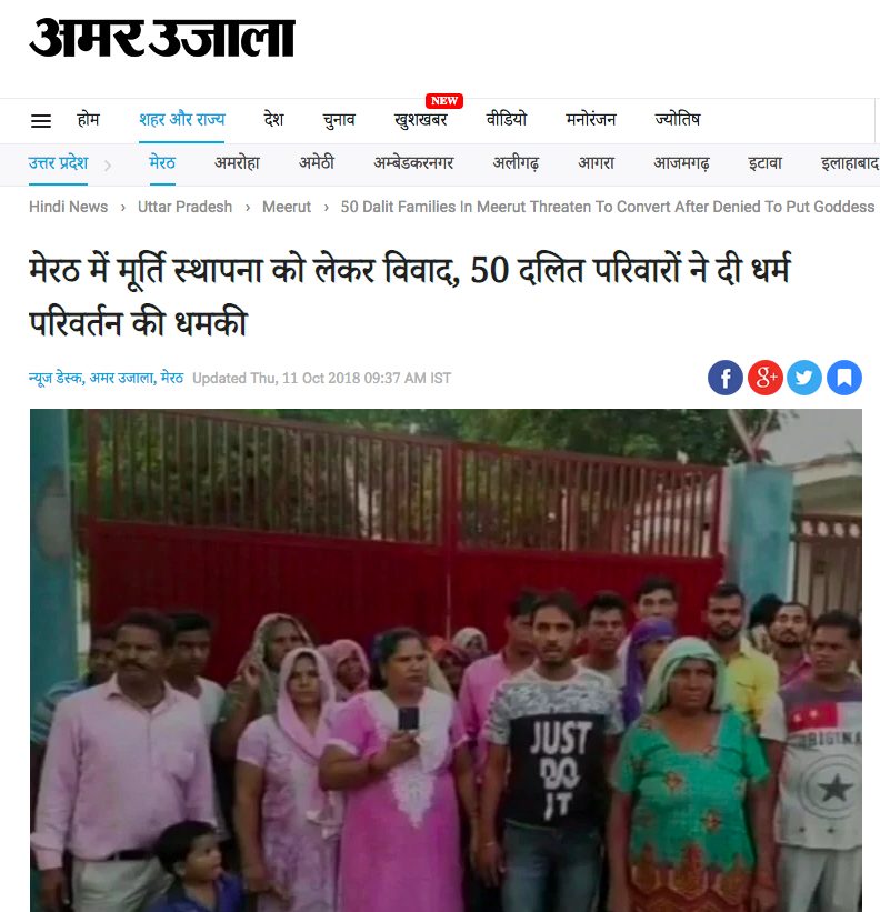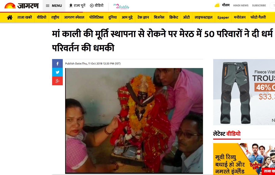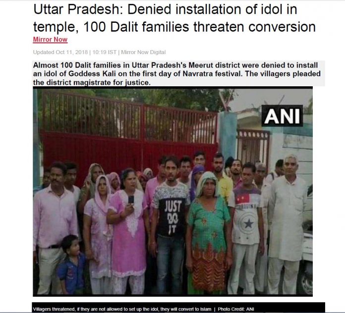 All major news agencies reported how a Dalit Hindu named Rajkumar along with his and 100 other families in Meerut’s village Masuri in West UP had decided to convert to Islam after being stopped from Maa Kali’s Murti Sthapana by others in village. Check this video from CNN News where Rajkumar announces conversion to Islam.