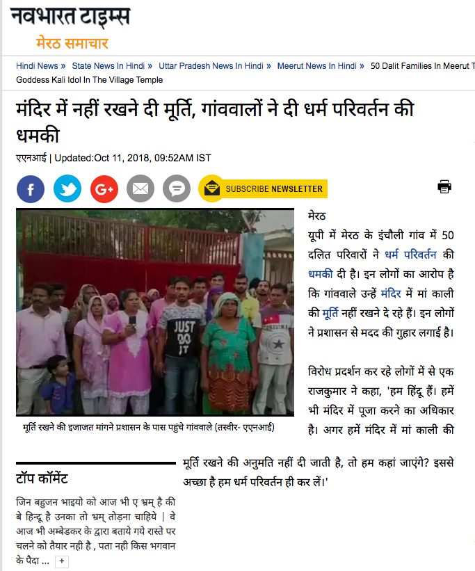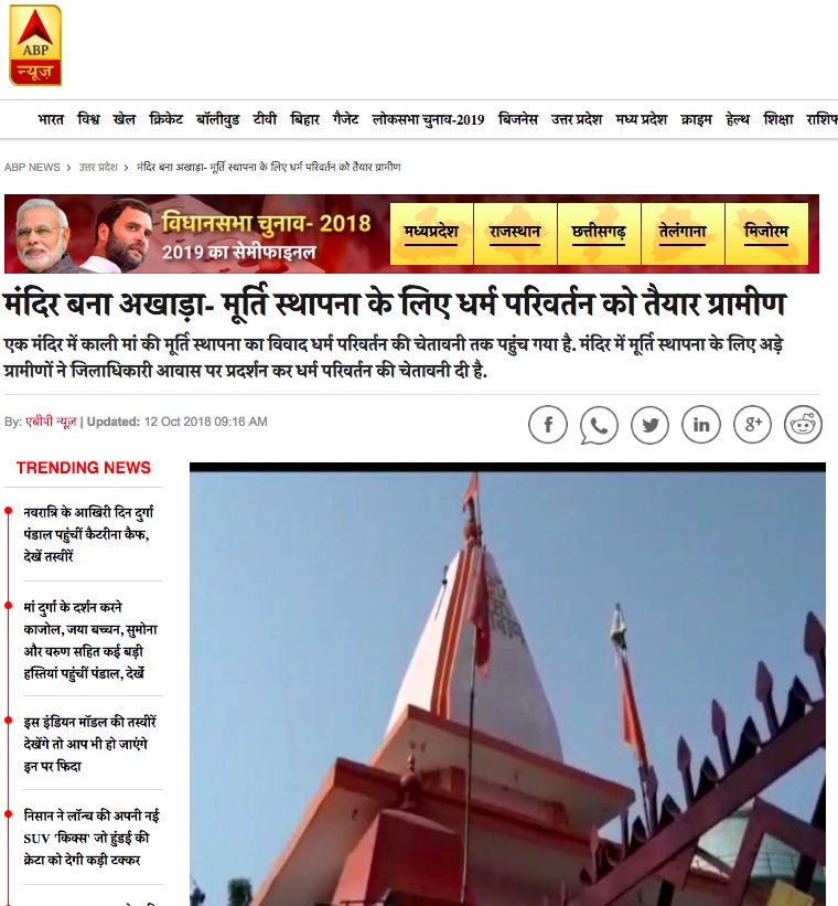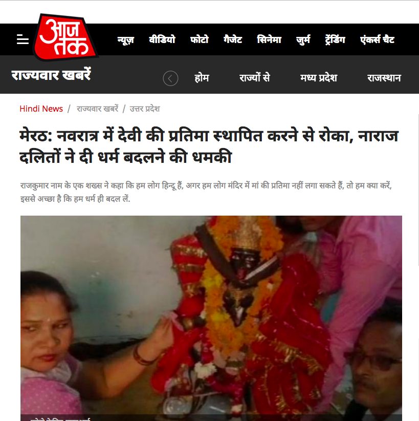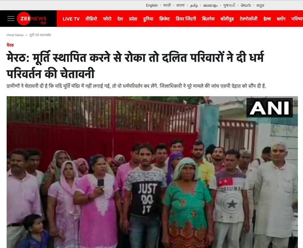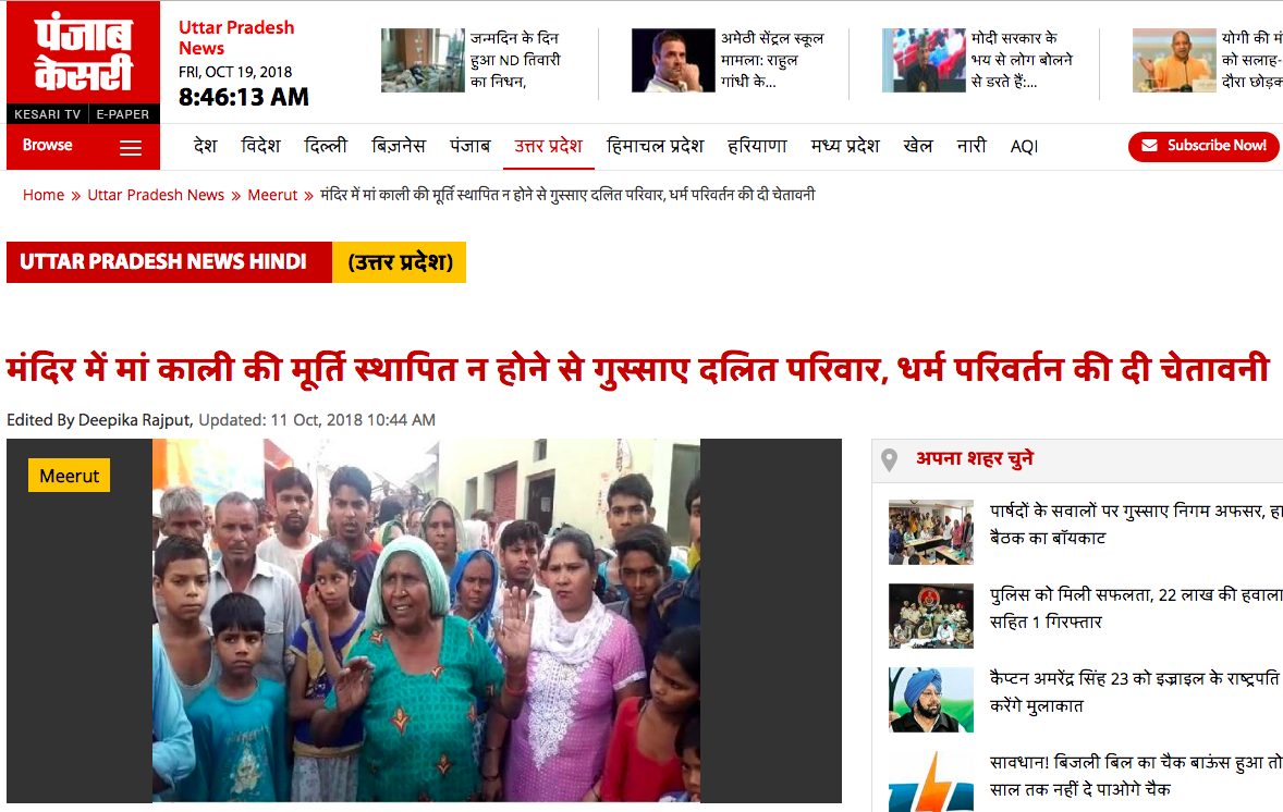 All major news agencies reported how a Dalit Hindu named Rajkumar along with his and 100 other families in Meerut’s village Masuri in West UP had decided to convert to Islam after being stopped from Maa Kali’s Murti Sthapana by others in village. Check this video from CNN News where Rajkumar announces conversion to Islam.