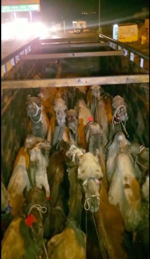 51 camels being illegally taken for slaughter from Rajasthan to Madhya Pradesh by Farid, Shakir, Zakir & Shakeel rescued near Chittor, Rajasthan.