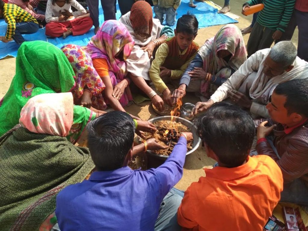 50 Hindus who had converted to Christianity few years ago have willingly embraced Vedic Dharma of their ancestors in an Agniveer’s event on 3rd Feb, 2019 at village- Indro, Fatehpur, UP, organised by Shubham Agniveer and his team- Pavan, Rahul, Abhijeet, Pankaj, Balram and Sumit. The team worked for months in the area to perform this miracle. The event was opposed by fanatics who couldn’t do anything in front of our committed Dharma family. Shubham and entire team thanked Shri Sanjeev Newar – founder- Agniveer for his blessings and miraculous tips. Dr Vashi Sharma, mentor- Agniveer had been constantly guiding and inspiring the team during the preparation and execution of the event.